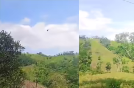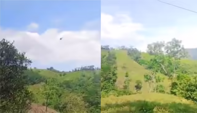 Vide0 Este es el momento en que el helicóptero policial en las zonas rurales en Amalfi, Antioquia