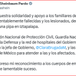 La presidenta de México, Claudia Sheinbaum, lamentó lo que sucedió después de la explosión de un automóvil de servicio que dejó a 6 mujeres y más de 90