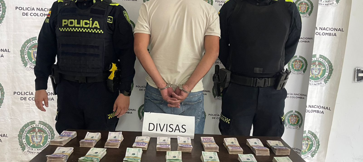 Hombre atrapado con 255 millones de pesos. Foto: policia en santander