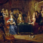 Fotofuß, mit der Anstrengung von Louis XIV, den Adel zu domestizieren, um das Potenzial für politische Opposition zu verringern, war es wichtig, die Oberschicht unterhaltsam zu halten, daher war das Spiel von entscheidender Bedeutung. («The Card Players», 1699, von Pierre Bergaigne)