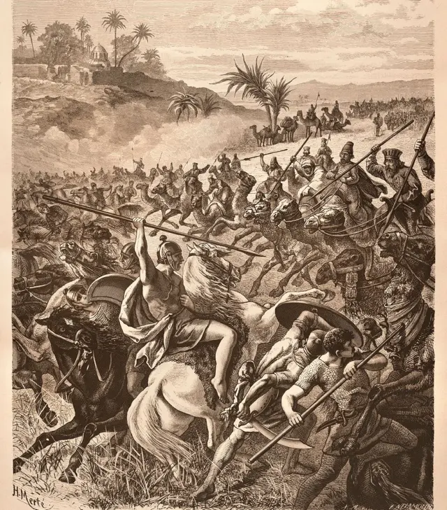 Fotofuß, Persiensieg gegen Lidia wurde dank der Einfallsreichtung von Ciro El Grande, der Disziplin seiner Männer und einer bemerkenswerten Verwendung von Kamele als Kavallerie gegen jede Prognose erzielt.