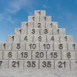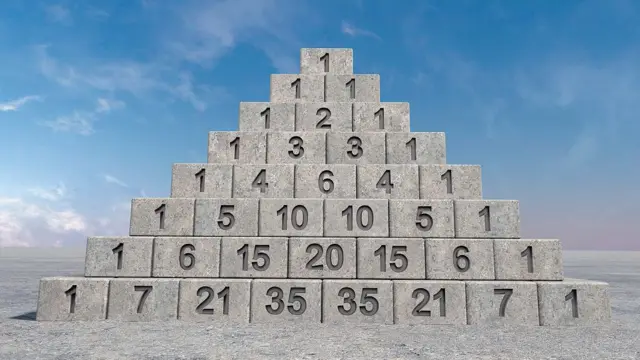 Das Dreieck ist aus 1 gebaut, und dann werden Zahlen in dreieckiger Form darunter platziert, wobei jede Dreieckszahl die Summe der beiden unmittelbar höheren Zahlen ist.